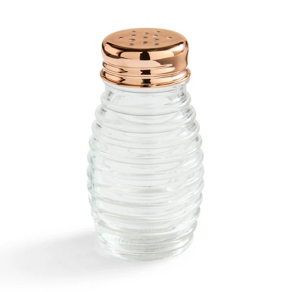 Add a touch of elegance to your table with these stylish beehive salt and pepper shakers. Crafted from tough soda lime glass, they boast an 80ml capacity and are topped with chic rose gold lids, combining practicality with a hint of luxury.