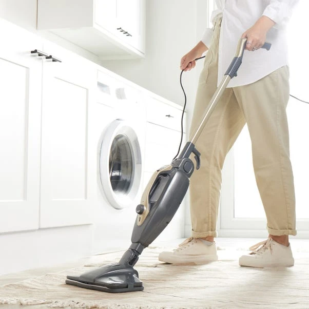 Elevate your cleaning game with this steam cleaner. Boasting 1300W power and a 350ml water tank, this chemical-free cleaning solution is ready to use in just 30 seconds. The ergonomic flexi hinge enables cleaning under furniture, while the conversion to a handheld unit allows for effective cleaning across various surfaces, including carpets, hard floors, upholstery, bathrooms, and kitchens.