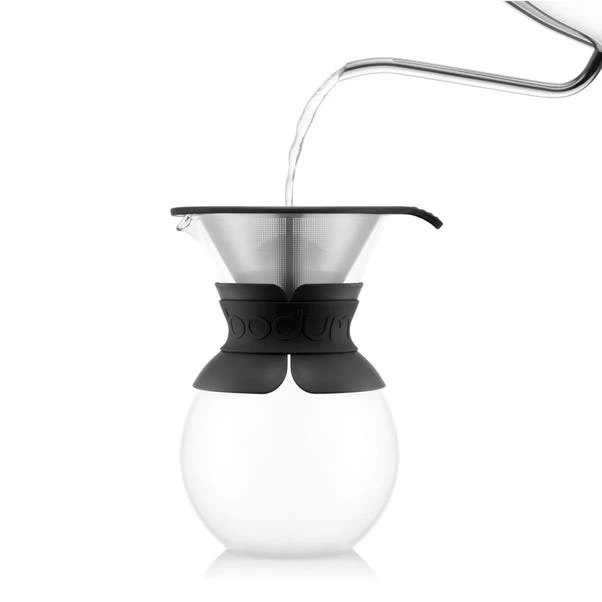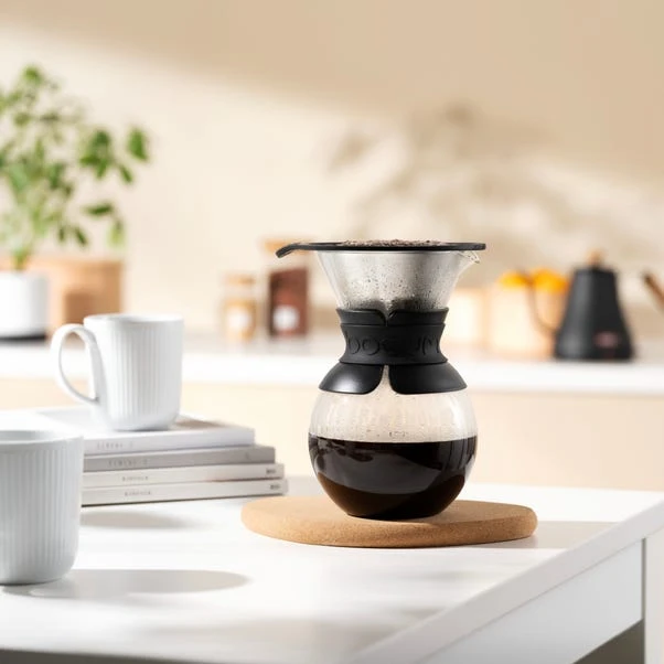 Taste the aromas and flavours of a full-bodied coffee with the help of Bodum’s black filter coffee maker. Its design led aesthetic is a beautiful addition to any kitchen. Made from premium quality borosilicate glass, the lovingly crafted carafe is fitted with a permanent stainless-steel filter for sustainable brewing. Enjoy a beautifully brewed cup at home with barista quality coffee from the comfort of your own kitchen.