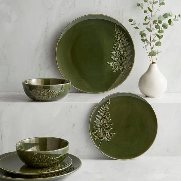 Experience the timeless charm of our embossed fern 12 piece dinner set. Crafted from sturdy stoneware, this set effortlessly merges style with practicality. With its stylish embossed fern design, it brings a touch of nature’s beauty to your dining table. And it’s not just about looks – this set is dishwasher safe and microwave-friendly, making meal prep and serving a breeze. Adorned with a glossy glazed finish, this 12-piece dinner set not only complements your culinary creations but also adds an extra layer of sophistication to your dining experience.