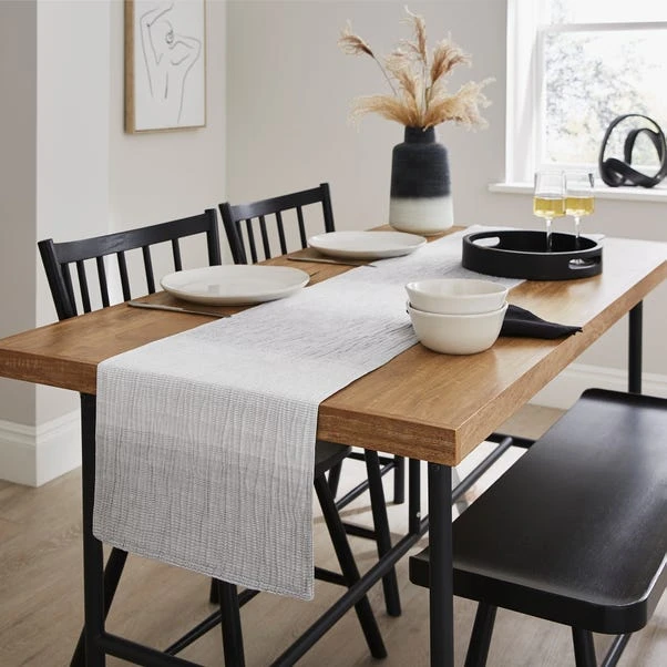 Elevate your dining table with our classic grey table runner, the epitome of elegance and practicality! Crafted with a soft feel and adorned with a crinkle finish, it adds texture and sophistication to any setting. The classic grey color effortlessly complements a variety of decor styles, making it a versatile choice for any occasion. Plus, it’s machine washable, ensuring easy cleanup and long-lasting use.
