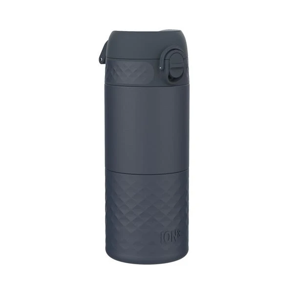 Take drinks on the go with ease with this handy travel mug from Ion8. Featuring a stainless steel vacuum insulated construction, hot drinks stay hot and cold drinks icy cold for hours. Say goodbye to drips and spills thanks to the leak-proof, lockable OneTouch lid, which opens a full 240 degrees for stress free sipping. The soft base is easily gripped and silently protects the cup and surfaces, and the wide brim is comfortable and convenient to use. Cleaning is easy using the dishwasher.