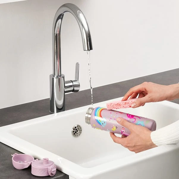 Stay hydrated with this fun unicorn water bottle from Ion8. Its slim design fits into most cup holders, and you can throw it in your bag without worrying about getting wet thanks to its leak-proof, lockable OneTouch lid. Stainless steel and dishwasher safe, this bottle is built to last.