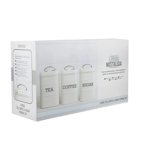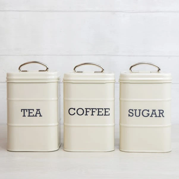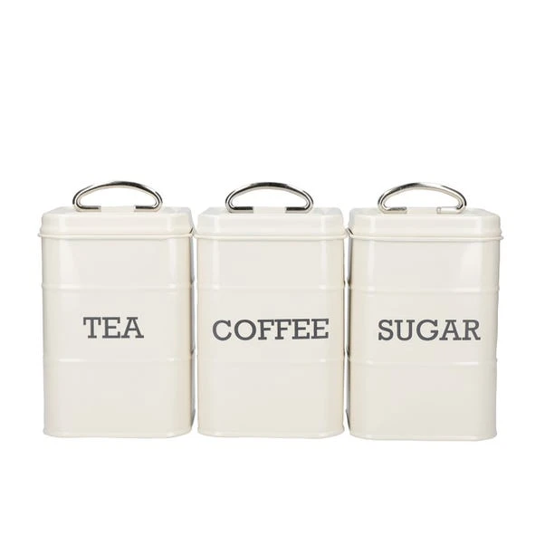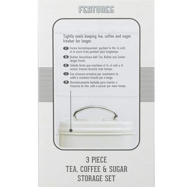 Say goodbye to cluttered supermarket boxes and hello to these vintage-style tea, coffee, and sugar canisters from Living Nostalgia. With a beautiful cream powder coating and printed labels, they add a charming touch to your kitchen while keeping everything organised. The secure lids lock in freshness, ensuring your essentials stay delicious for longer. Their compact size makes them perfect for shelves or tucked neatly into unused corners, adding both style and function to your space. Finished with a classic metal handle, this set is as practical as it is timeless. Packaged in a lovely gift box, these canisters also come with a 12-month guarantee – a perfect gift for any lover of vintage style.