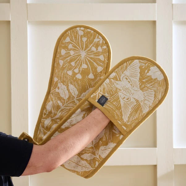 Protect your hands from hot pots and pans with the charming Meadow Starling Double Oven Glove. This beautiful addition to your kitchen features a stylish starling motif that is both eye-catching and practical. Made from a heat-resistant soft blend of 85% cotton and 15% linen, it offers the perfect balance of comfort and durability. Handle the heat of the kitchen with flair, complete the look by shopping our extended range and create a cohesive nature inspired aesthetic for your kitchen.