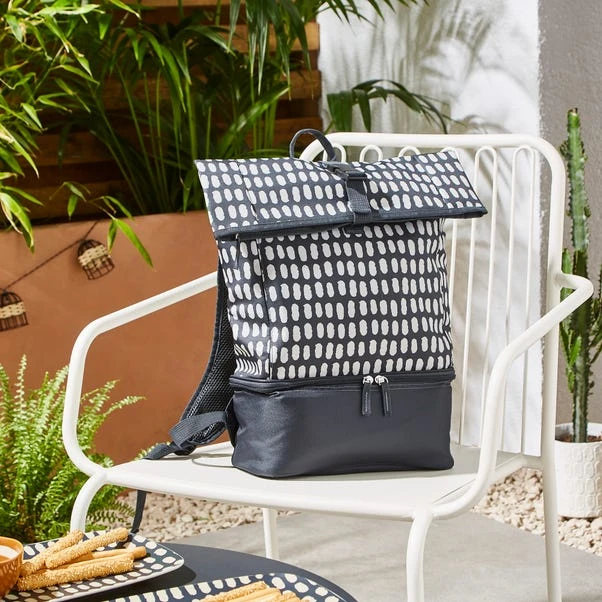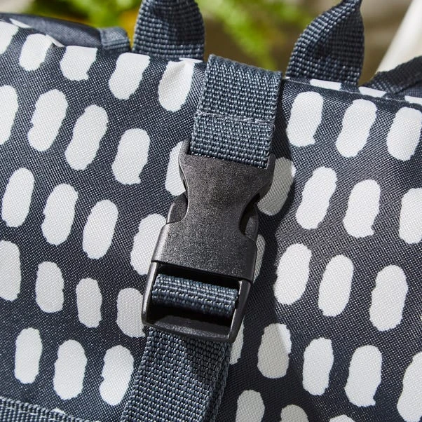 This cool bag is the perfect companion for summer afternoon picnics. Comfortable shoulder straps make it easy to carry, and the insulated inner keeps food cool and fresh. The bag rolls down and secures with a buckle for improved cooling performance, and there’s a lower zip compartment too. The bag is finished with a fun polka dot design.