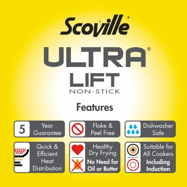 Ultra-Lift brings extreme non-stick release with a wipe-clean surface into a range of kitchenware specifically tailored to make life easier. This 26cm Sauté Pan is a versatile addition to any kitchen. Its large base makes it so quick and easy to throw together tasty and healthy meals.