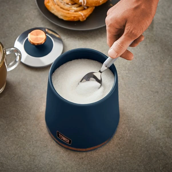 Complete the contemporary looks of your kitchen with this set of 3 storage canisters with a round statement design. They feature a fully removable lid, a stylish matte finish, elegant rose gold accents, and a clean and compact design. The body of the canisters are made of durable carbon steel and each canister has a capacity of approximately 1.3L..