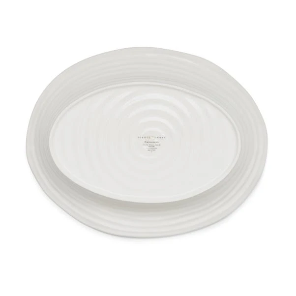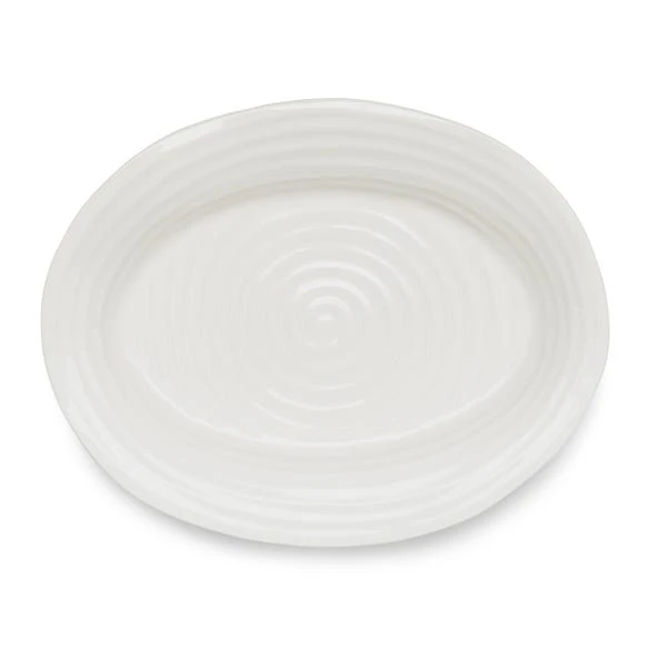 Serve up in style with Sophie Conran’s Medium Oval Plate, crafted with a high-quality porcelain, suitable for special occasions or everyday use, and designed with Sophie Conran’s signature ripple texture style. Embellished with this unique raised surface and in a crisp white colour, this oven-safe piece is guaranteed to attract attention and create a scrumptious scene as a less common oval shape allows for filling gaps on the table and creating space for lengthier foods such as carrots and parsnips to sit comfortably. Other pieces from the Sophie Conran for Portmeirion range are also available for a complete and co-ordinated look.
