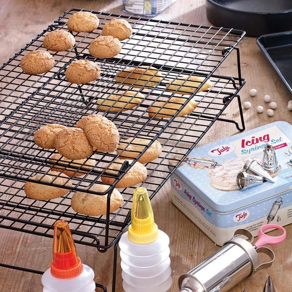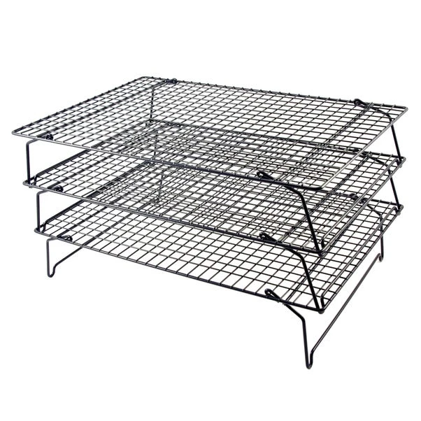 This metal cake rack from Tala features three layers for cooling baked goods and features a non-stick coating and collapsible frame for space-saving convenience.