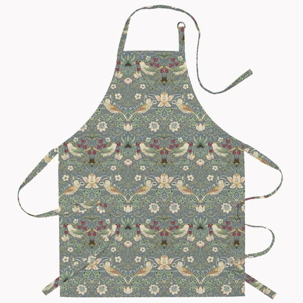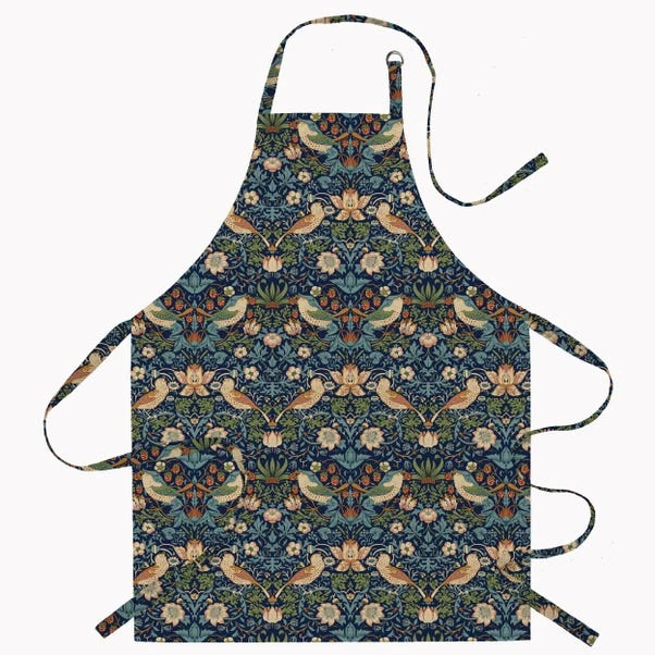 The William Morris Strawberry Thief apron provides a stylish and practical addition to your kitchen attire. Embrace the charm of our traditional and timeless floral and birds design, adding a touch of elegance to your cooking routine. The adjustable collar ensures a comfortable fit, while the waist ties provide a secure and customisable closure. Made from 100% cotton with a acrylic coating which is easy to wipe clean, so don’t worry about the pasta sauce splatters, simply wipe clean with a damp cloth. This apron is available in three colourways to match any style of home decors.